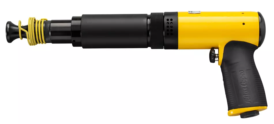 RRH14 is a riveting hammer incorporating completely revolutionary ergonomic advantages. Designed to minimize the riveter’s exposure to vibration while maintaining high tool performance, the RRH14 vibration-damped riveting hammer, combined with the RBB vibration damped bucking bar, offers an unbeatable system for riveting. The tool features adjustable power using our feather trigger or the optional regulator, enabling the user to set the power for different rivet materials and sizes.